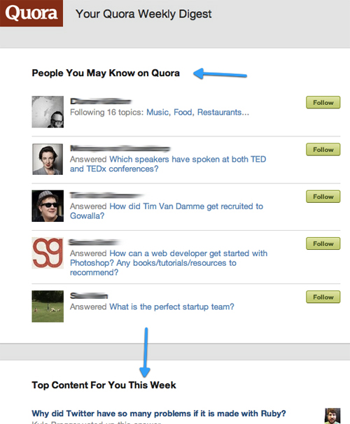 Quora會在郵件當中向用戶推薦他可能感興趣的內容。如果你的網站或應用有足夠的數據來支持這樣的個性化服務,那么就考慮一下吧。