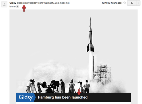 同樣是一幅與其站點風格相一致的復古照片。另外,注意到他們用來發送郵件的郵箱名稱沒?與常見的做法不同,Gidsy在這里使用了"please-reply",以此向用戶表達自己樂于傾聽意見的姿態。