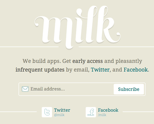 Milk家的細節處理方式會讓用戶更加樂于訂閱他們的新聞郵件。他們的做法與Hunch類似,都是在文案中明確的告訴用戶新聞郵件的重要性,而且不會很頻繁。