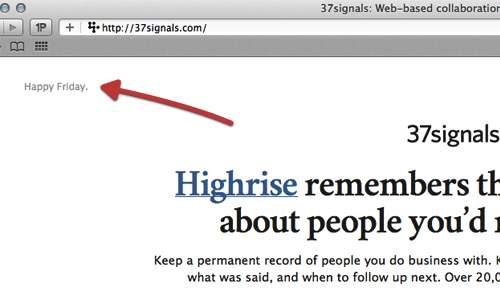 而37signals則通過左上角的當日問候語來簡單而有效的拉近了網站與用戶之間的情感距離。