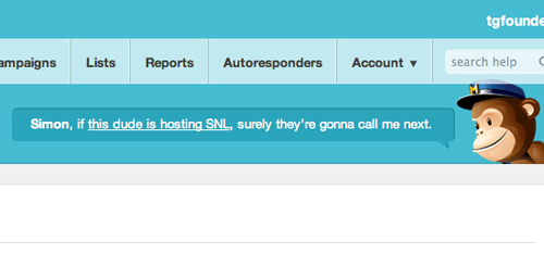 MailChimp 在情感化設計方面的一個特色之處就是他家的吉祥物,猩猩Freddie。這家伙會在你的個人資料頁打開之后為你歡呼,而且每次刷新頁面之后都會冒出一些隨機的笑話或鏈接。