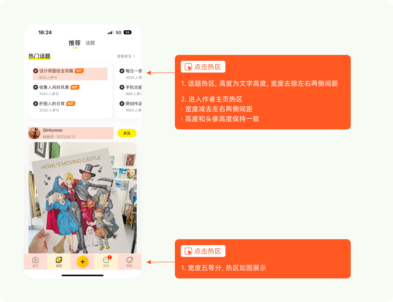 點擊熱區是指用戶在界面上最容易點擊的區域。可以標注出點擊熱區的位置、大小和形狀,以便團隊成員在實現交互時更好地考慮用戶體驗和操作習慣。