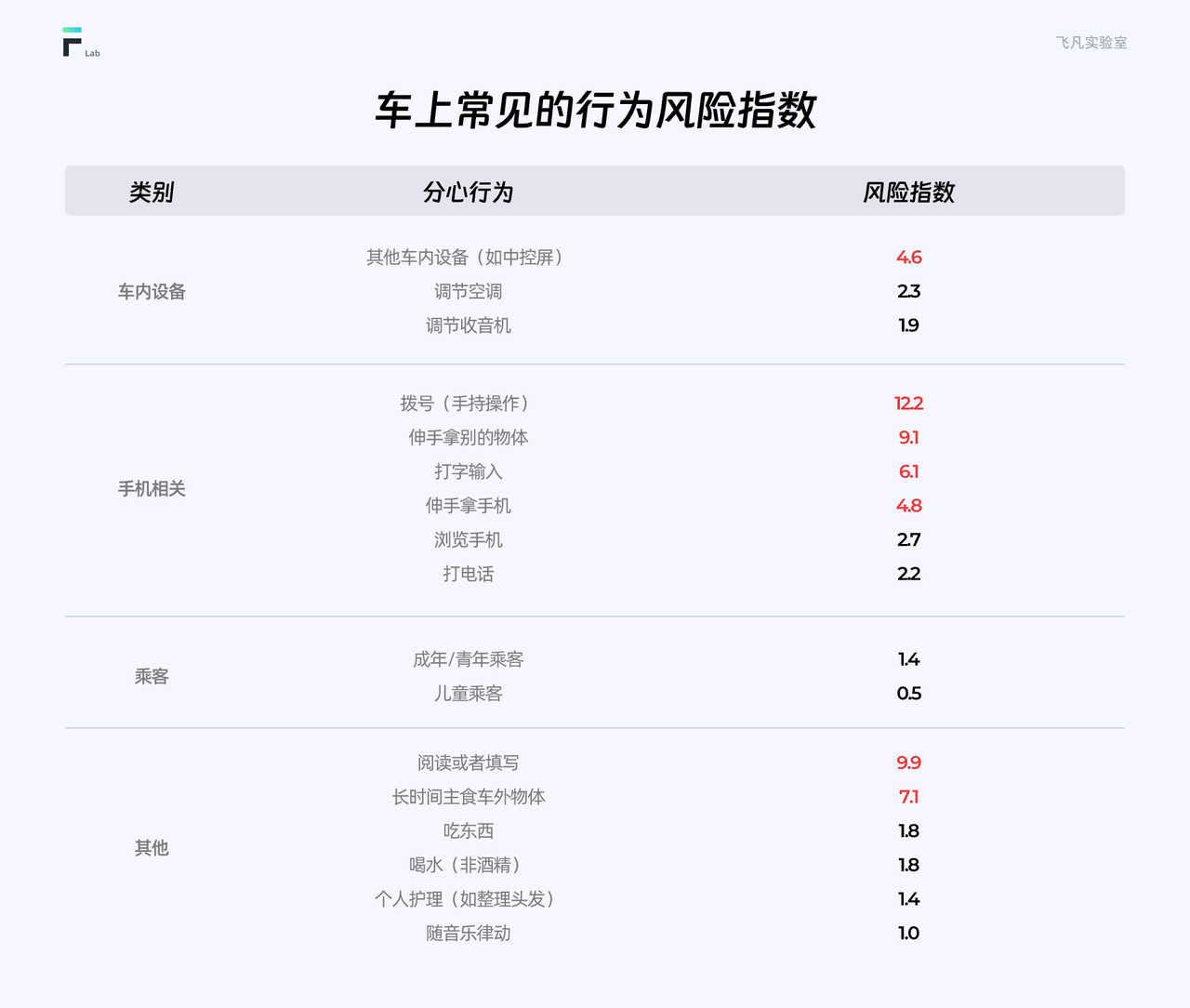 然而,需要注意的是,風險指數是一個相對的指標,不同的駕駛員可能會因其駕駛技能、經驗和個人特點而對同一行為產生不同的反應和風險感知。因此,駕駛員應該始終遵守交通規則和法律,盡量避免分心行為,以確保自己和他人的安全。